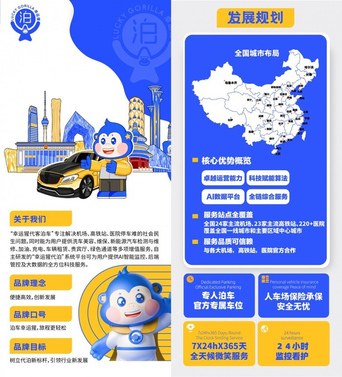 随着城市交通的日益拥堵和停车难问题的加剧,幸运猩代客泊车服务应运而生,为繁忙的出行人群提供了极大的便利。幸运猩代客泊车作为这一领域的创新者,现寻求与各大渠道合作伙伴携手,共创“代泊+智慧车生活”服务,为更多行业优质企业及会员客户提供尊享泊车服务。